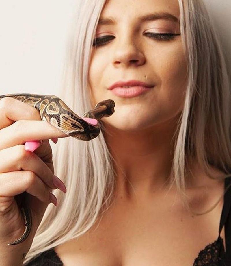 Laat mijn kleine vriendje je niet afschrikken, de enige slang die ik in mijn kut wil, is die van een man. Aan hem heb je dus geen concurrentie.